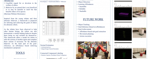 Inspired from the young infants and their altruistic behavior, we propose a framework for inferring and achieving the goals of others for altruistic robots. As the infants have been observed to help other human beings or even spherical objects as showcased by recent experiments, the robots can also demonstrate a similar helping behavior despite there being no real rewards for themselves. This framework offers a model for robots to infer the actions of another agent and complete these actions if necessary for altruistic behavior. As the main part of the goal-inference, an affordance based inferring mechanism is proposed.