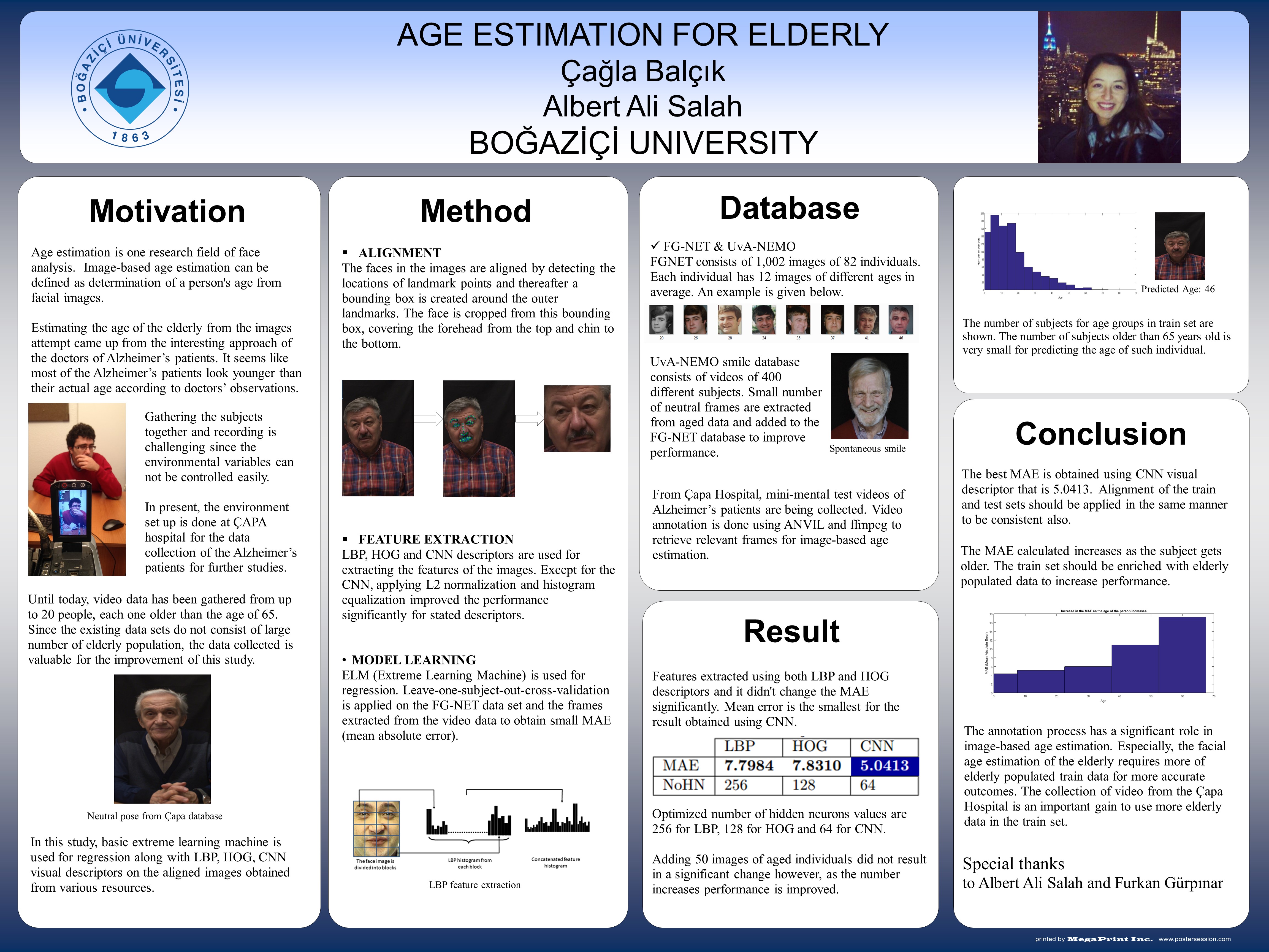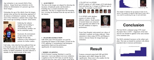Age estimation is one research field of face analysis. Image-based age estimation can be defined as determination of a person's age from facial images. Estimating the age of the elderly from the images attempt came up from the interesting approach of the doctors of Alzheimer’s patients. It seems like most of the Alzheimer’s patients look younger than their actual age according to doctors’ observations. Until today, video data has been gathered from up to 20 people, each one older than the age of 65. Since the existing data sets do not consist of large number of elderly population, the data collected is valuable for the improvement of this study. In this study, basic extreme learning machine is used for regression along with LBP, HOG, CNN visual descriptors on the aligned images obtained from various resources.