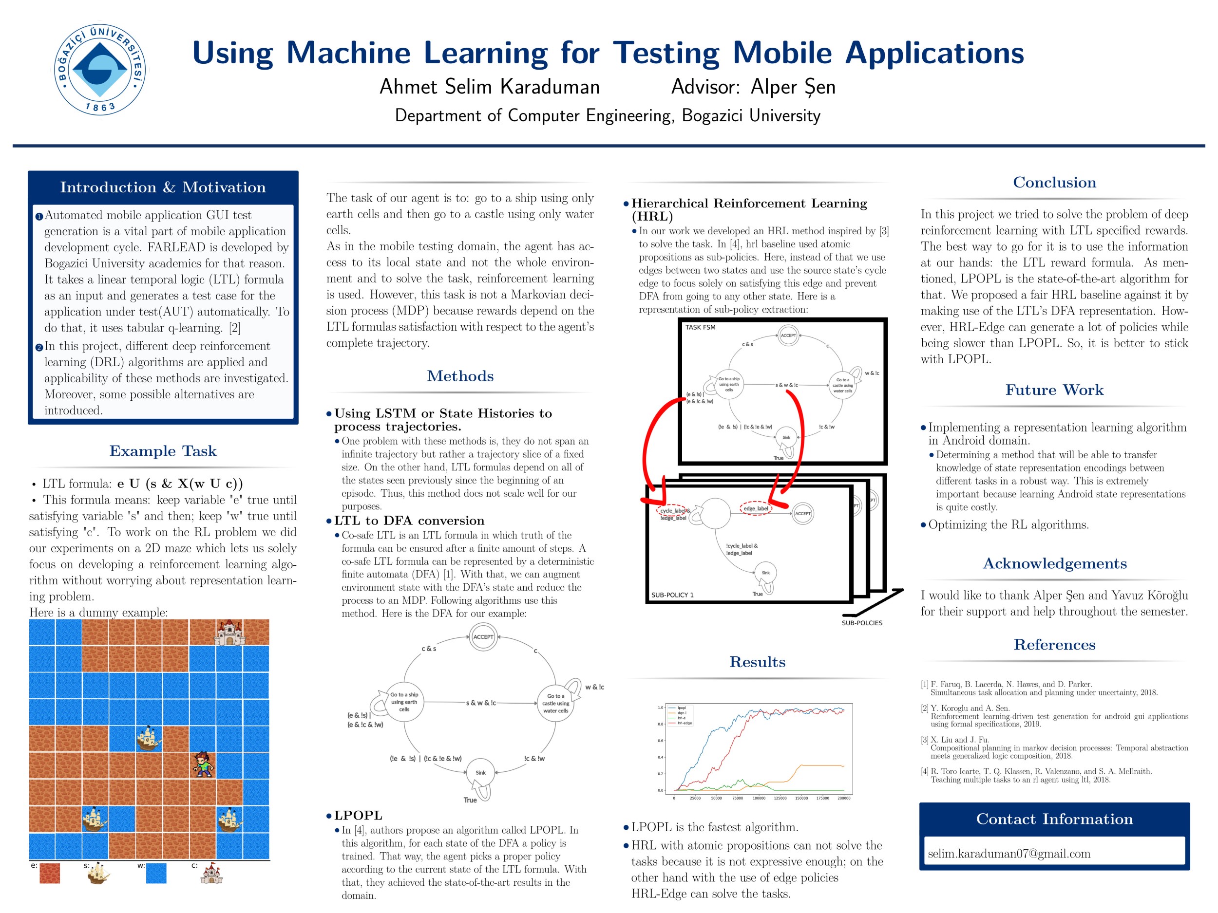 Applying deep reinforcement learning methods for tasks whose rewards are specified by a linear temporal logic formula; for the purpose of automatic test case generation for Android GUI applications