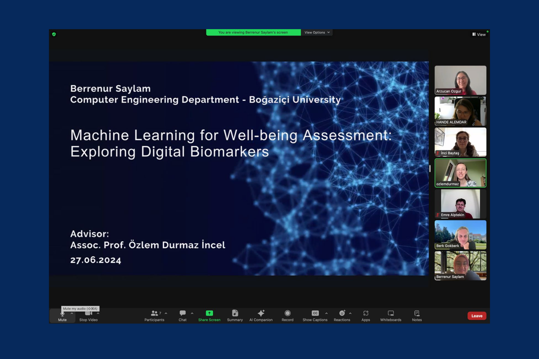 Berrenur Saylam receives her PhD with her thesis Machine Learning for Well-being Assessment: Exploring Digital Biomarkers