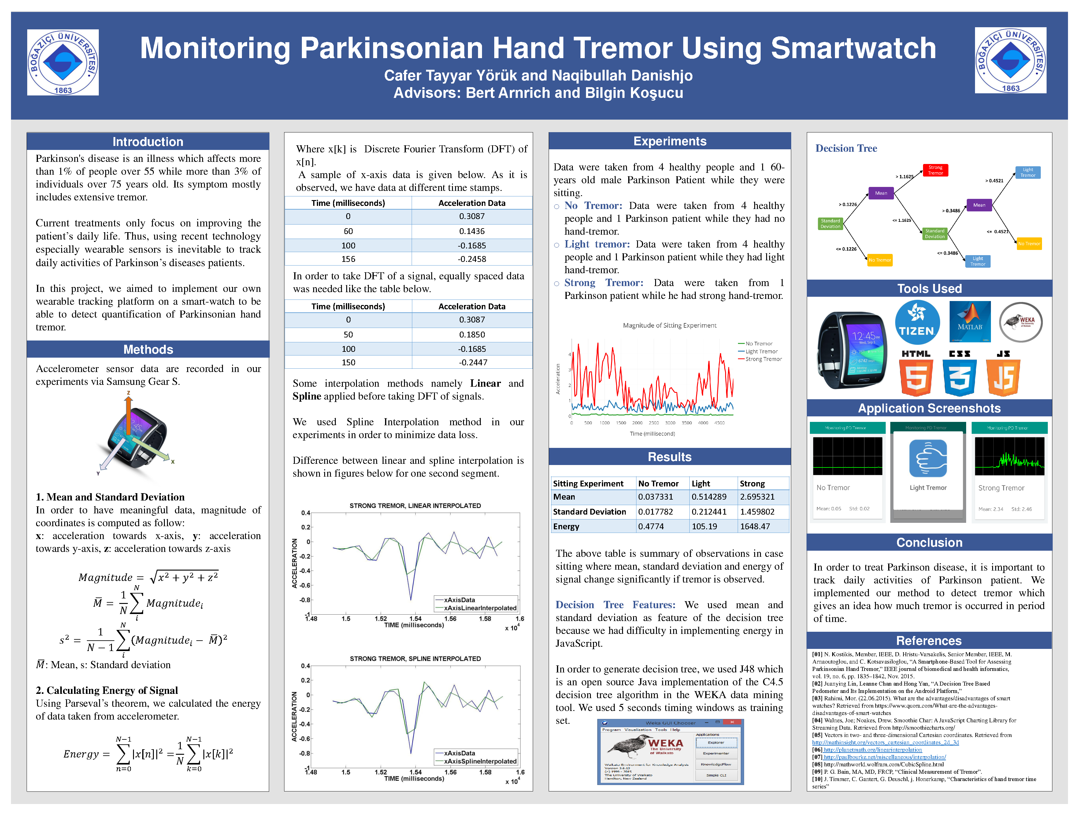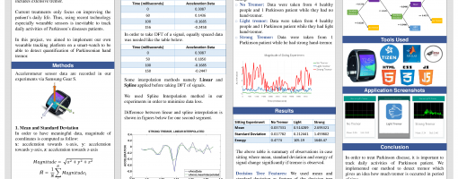 Parkinson's disease is an illness which affects more than 1% of people over 55 while more than 3% of individuals over 75 years old. Its symptom mostly includes extensive tremor.  In order to treat Parkinson disease, it is important to track daily activities of Parkinson patient. In this project, we aimed to implement our own wearable tracking platform on a Smart-watch to be able to detect quantification of Parkinsonian hand tremor.