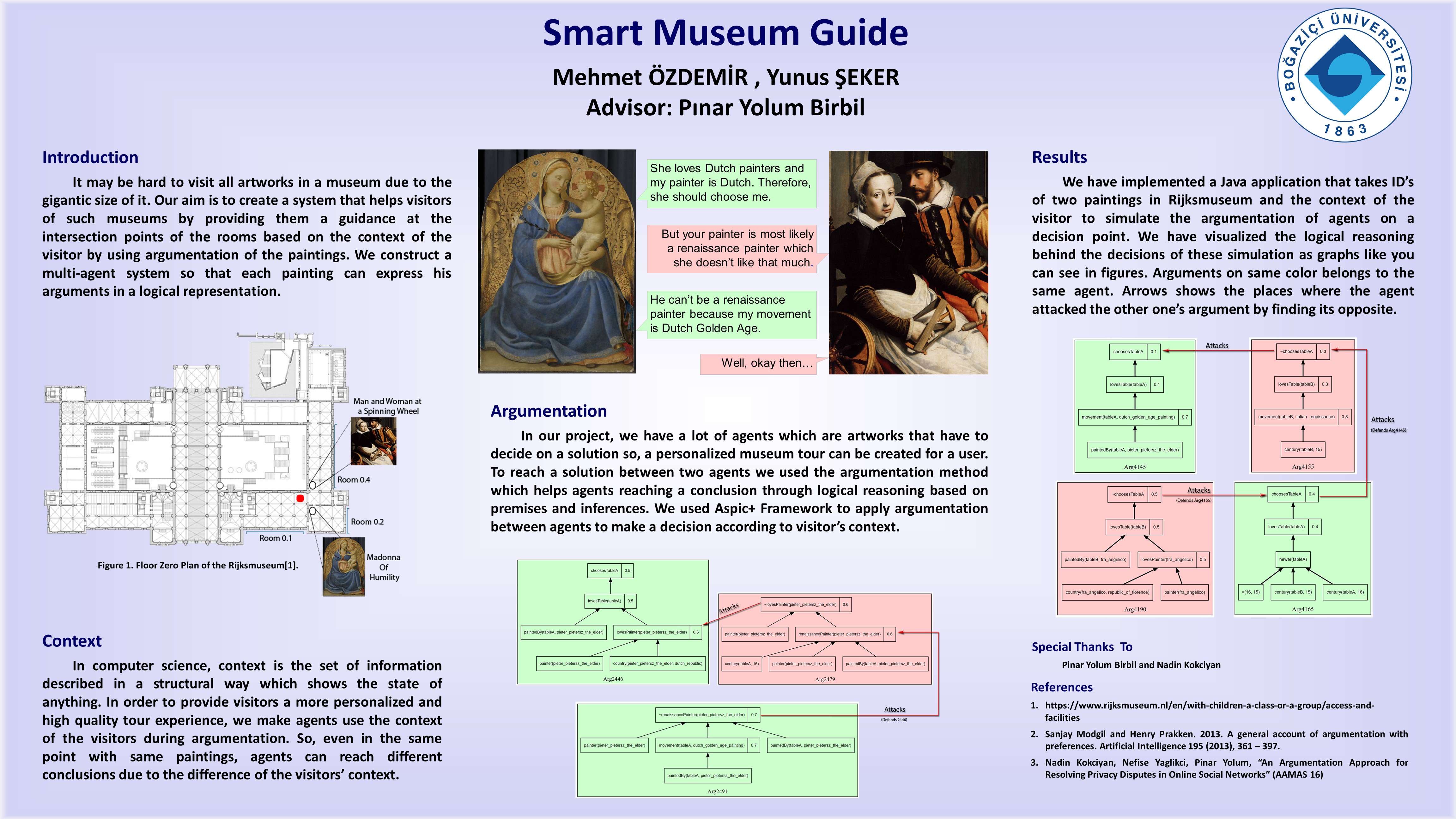 It may be hard to visit all artworks in a museum due to the gigantic size of it. Our aim is to create a system that helps visitors of such museums by providing them a guidance at the intersection points of the rooms based on the context of the visitor by using argumentation of the paintings. We construct a multi-agent system so that each painting can express his arguments in a logical representation.