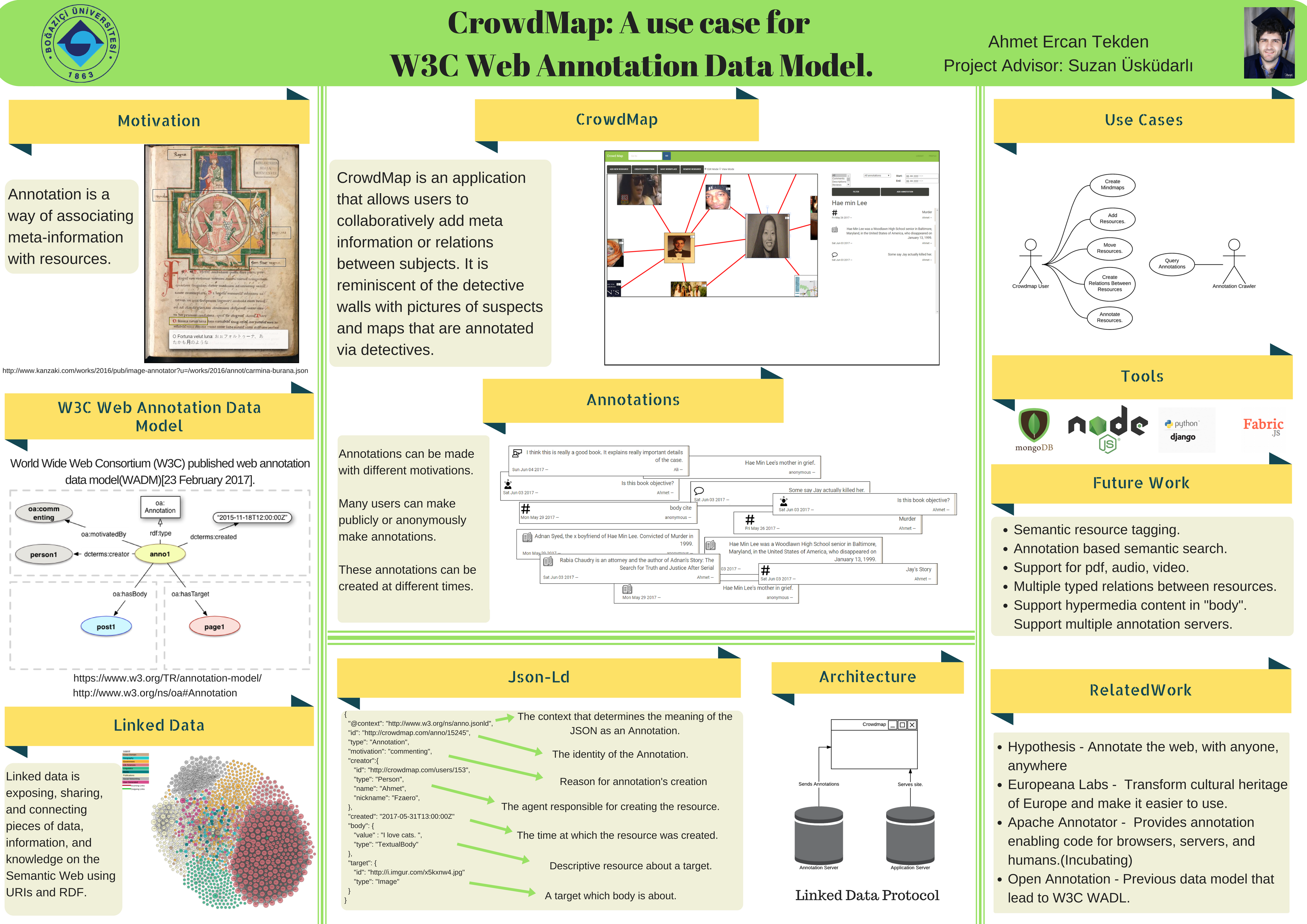 annotation data model. The use case was Crowdmap. CrowdMap is an application that allows users to collaboratively add meta information or relations between subjects. It is reminiscent of the detective walls with pictures of suspects and maps that are annotated via detectives.