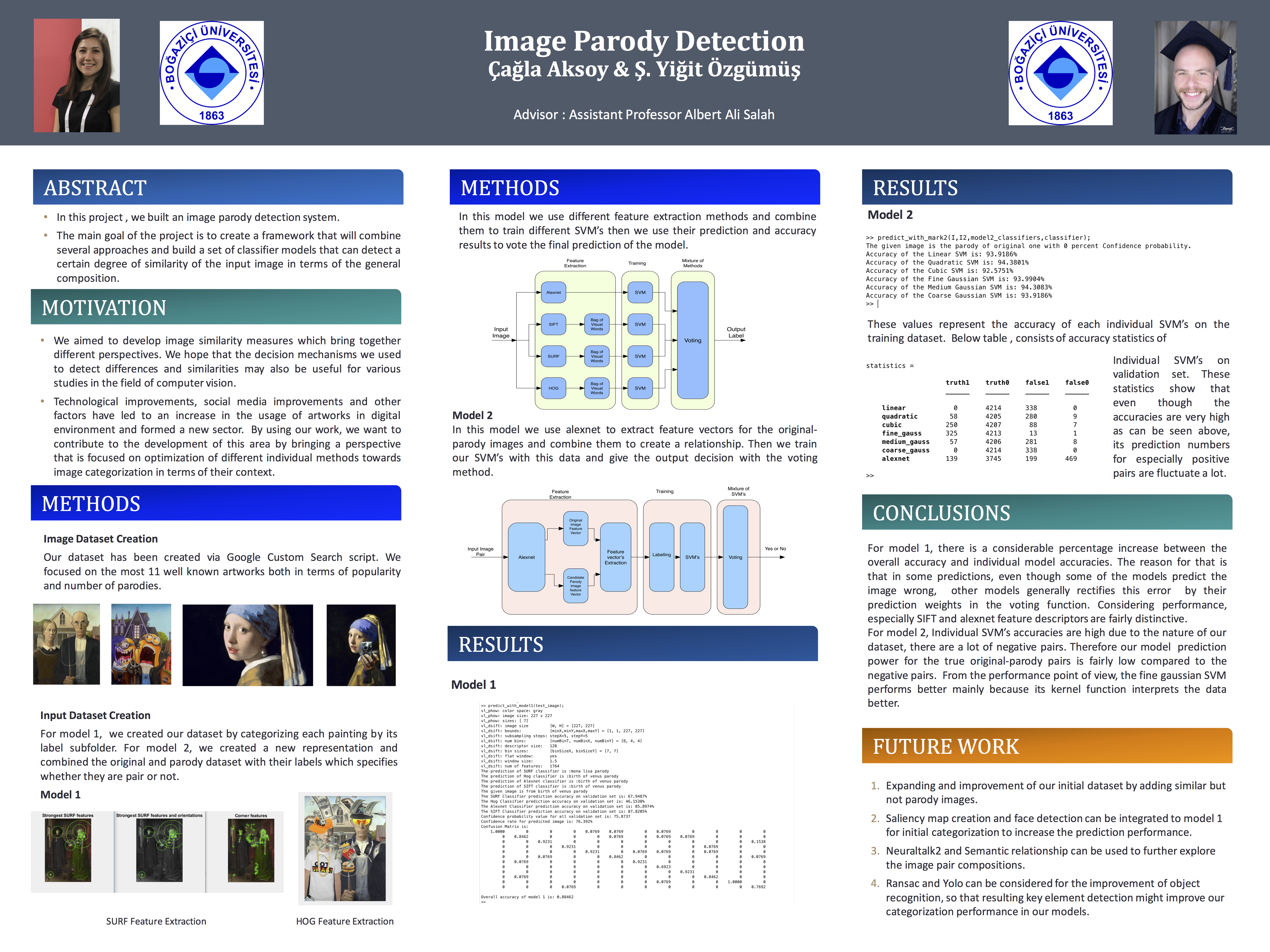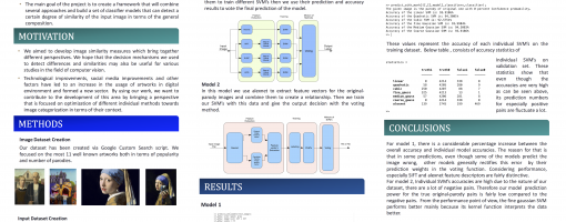 • The main goal of the project is to create a framework that will combine several approaches and build a set of classifier models that can detect a certain degree of similarity of the input image in terms of the general composition.