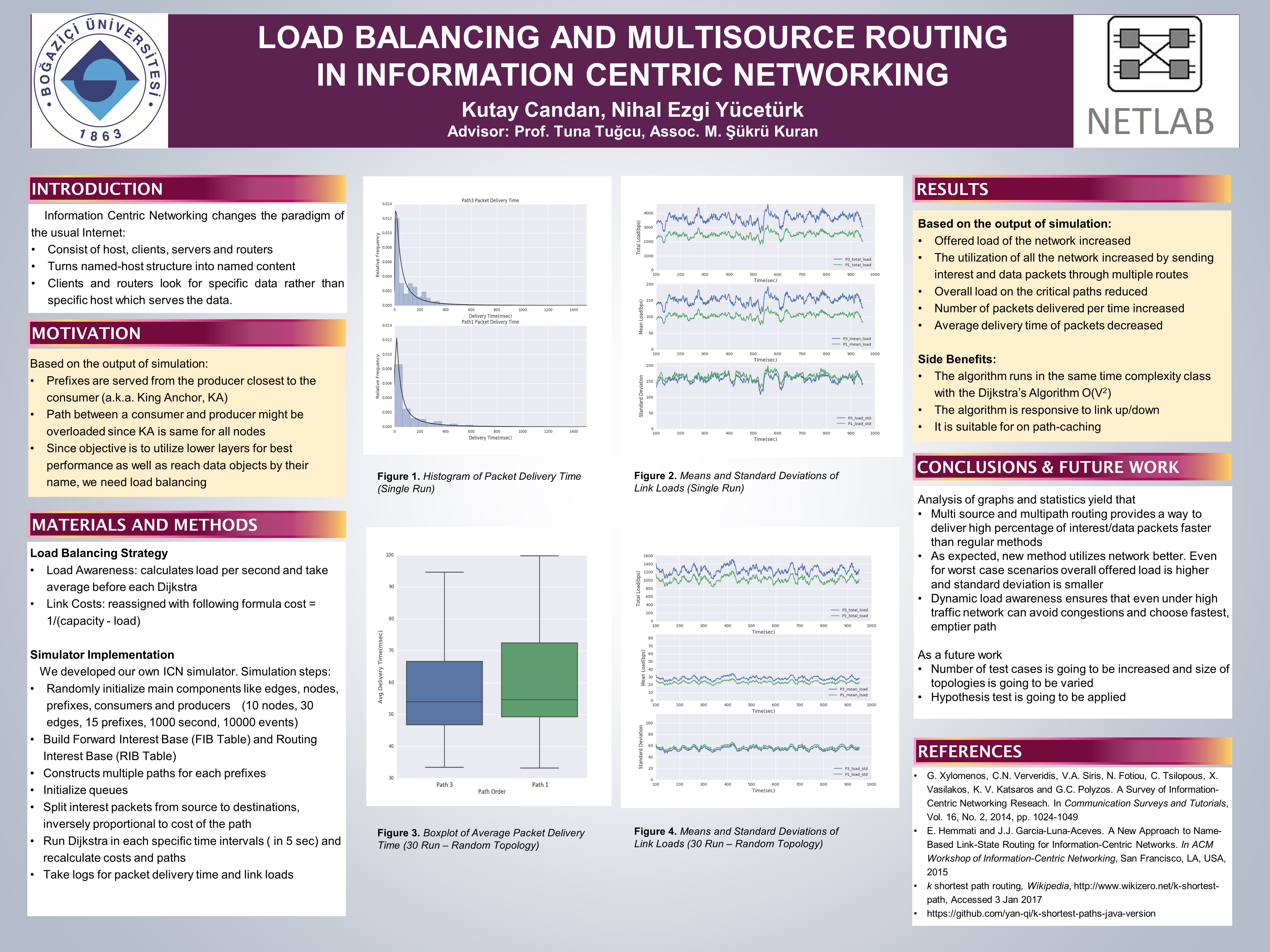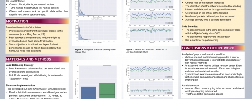 Information-Centric Networking is still an incomplete paradigm which introduces a large variety of new topics and approaches over the traditional networking. Since it is a relatively new concept which promises for easier and faster data access many aspects of it have been studied intensely in recent years. Nonetheless, load balancing is one of the less focused but high potency, open-ended areas. The aim of this project is to present an alternative technique to load balancing in the domain of pre-suggested routing method LSCR (Link State Content Routing). We suggested multi-path interest and multi-source data packet routing on the bases of Forwarding and Routing Tables of LSCR and packet routing protocol of Source Routing We have been developing a simulator software to implement and test the multi-path routing algorithm. Multi-path routing and LSCR are then going to be compared with regard to the load of the links, package loss, package delay and overall network performance.