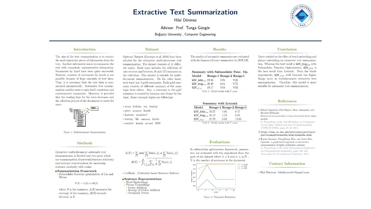 In this project, I have studied on the effect of word embedding and phrase embedding on extractive multi-document text summarization.  Two types of sentence selection methods which are Submodular Function Optimization and LexRank are implemented.  All combinations with summary framework and sentence representations are evaluated.