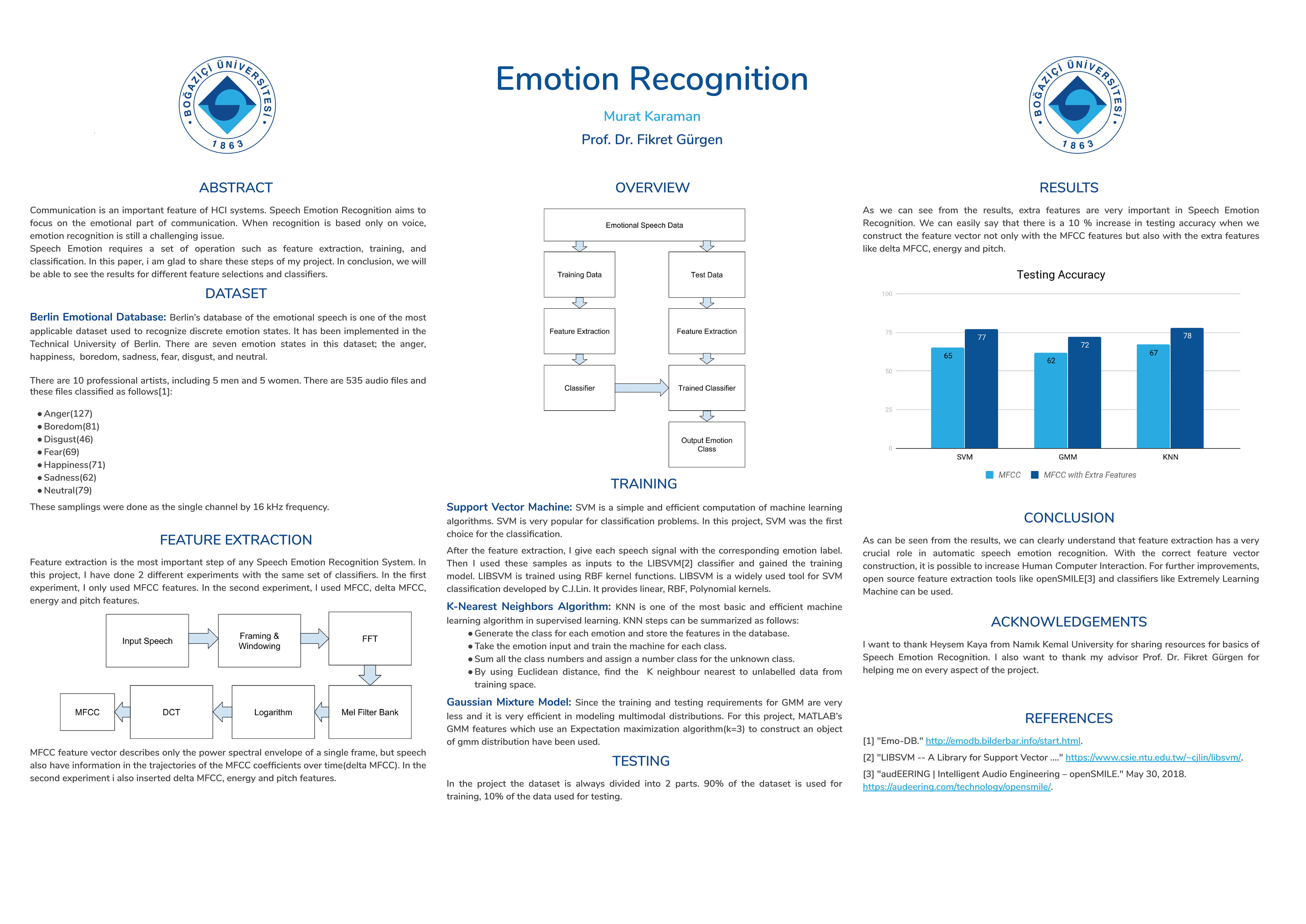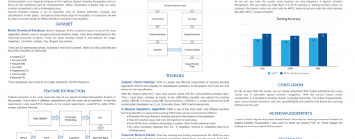 Communication is an important feature of HCI systems. Speech Emotion Recognition aims to focus on the emotional part of communication. When recognition is based only on voice, emotion recognition is still a challenging issue. Speech Emotion requires a set of operation such as feature extraction, training, and classification. In this paper, i am glad to share these steps of my project. In conclusion, we will be able to see the results for different feature selections and classifiers.