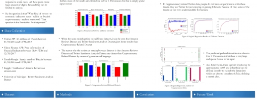 Other than their immediate effect, these social media posts sometimes influence some social indicators in the future, economy and markets, for example. In this project, we have decided to analyze the correlation between cryptocurrency markets and people's thoughts as represented in their posts on the social media platforms. For example, by creating a robust machine learning model, we can predict the future price changes in the cryptocurrency markets and decide whether to invest in them or not.