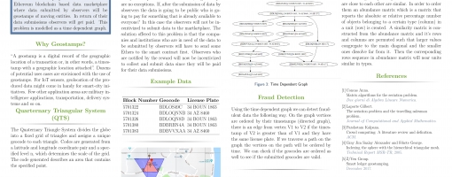A geostamp is a record of a geographic location with a timestamp. An Ethereum blockchain based data market will be developed where observers will be able to submit geostamps of moving entities and get paid for their usage by others.