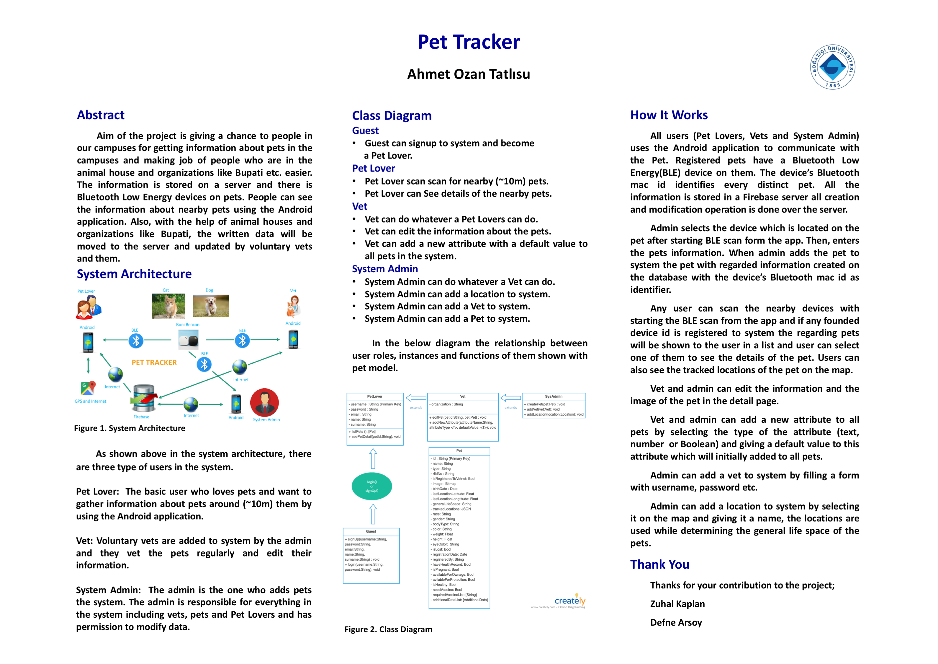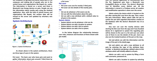 Aim of the project is giving a chance to people in our campuses for getting information about pets in the campuses and making job of people who are in the animal house and organizations like Bupati etc. easier. The information is stored on a server and there is Bluetooth Low Energy devices on pets. People can see the information about nearby pets using the Android application. Also, with the help of animal houses and organizations like Bupati, the written data will be moved to the server and updated by voluntary vets and them.