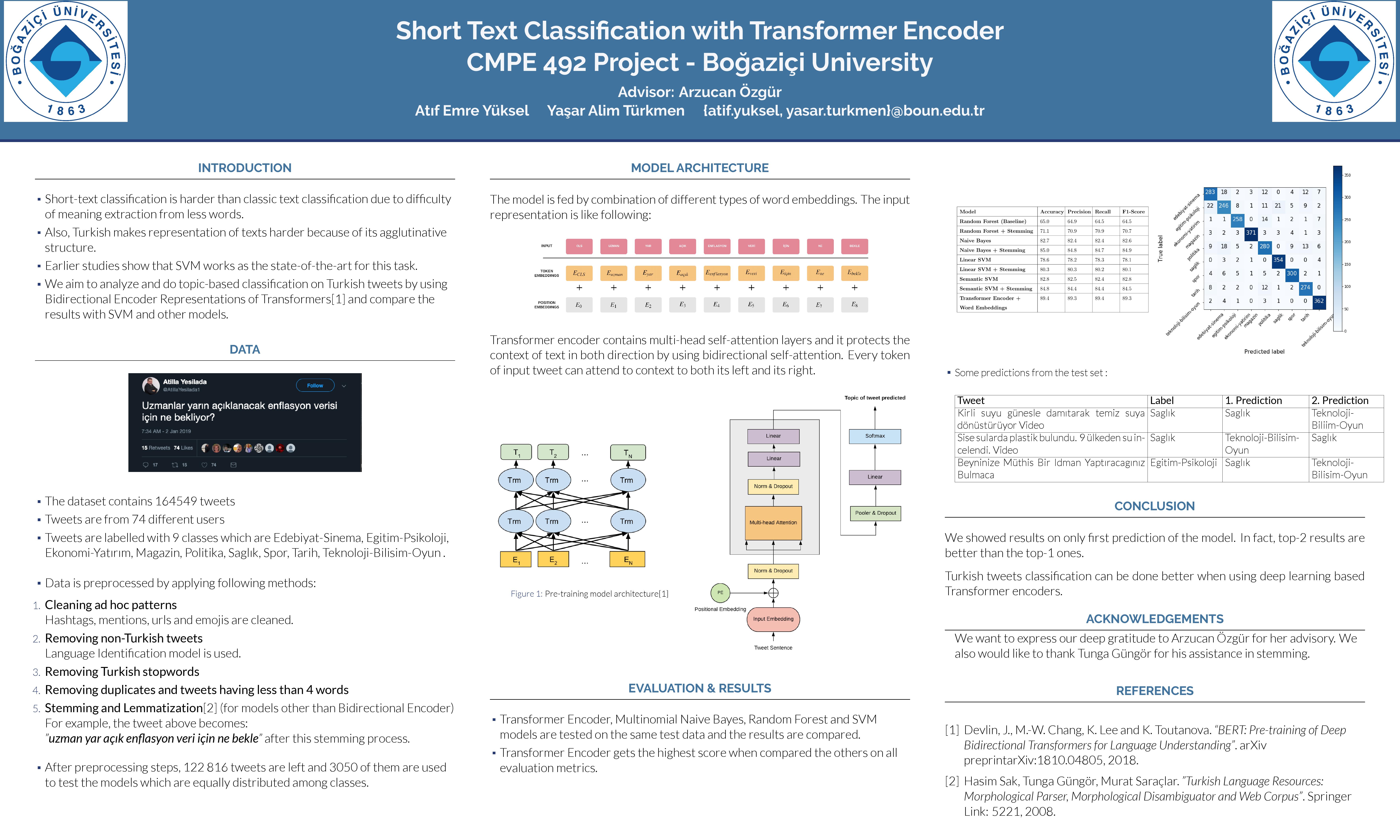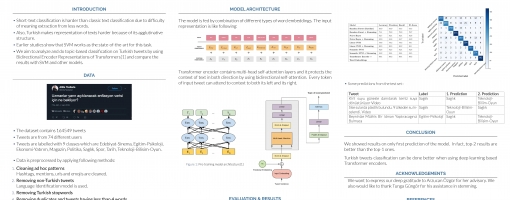 Shot-text classification is a challenging topic in particular for Turkish text due to sparsity of distinguishing features and high dimensionality.