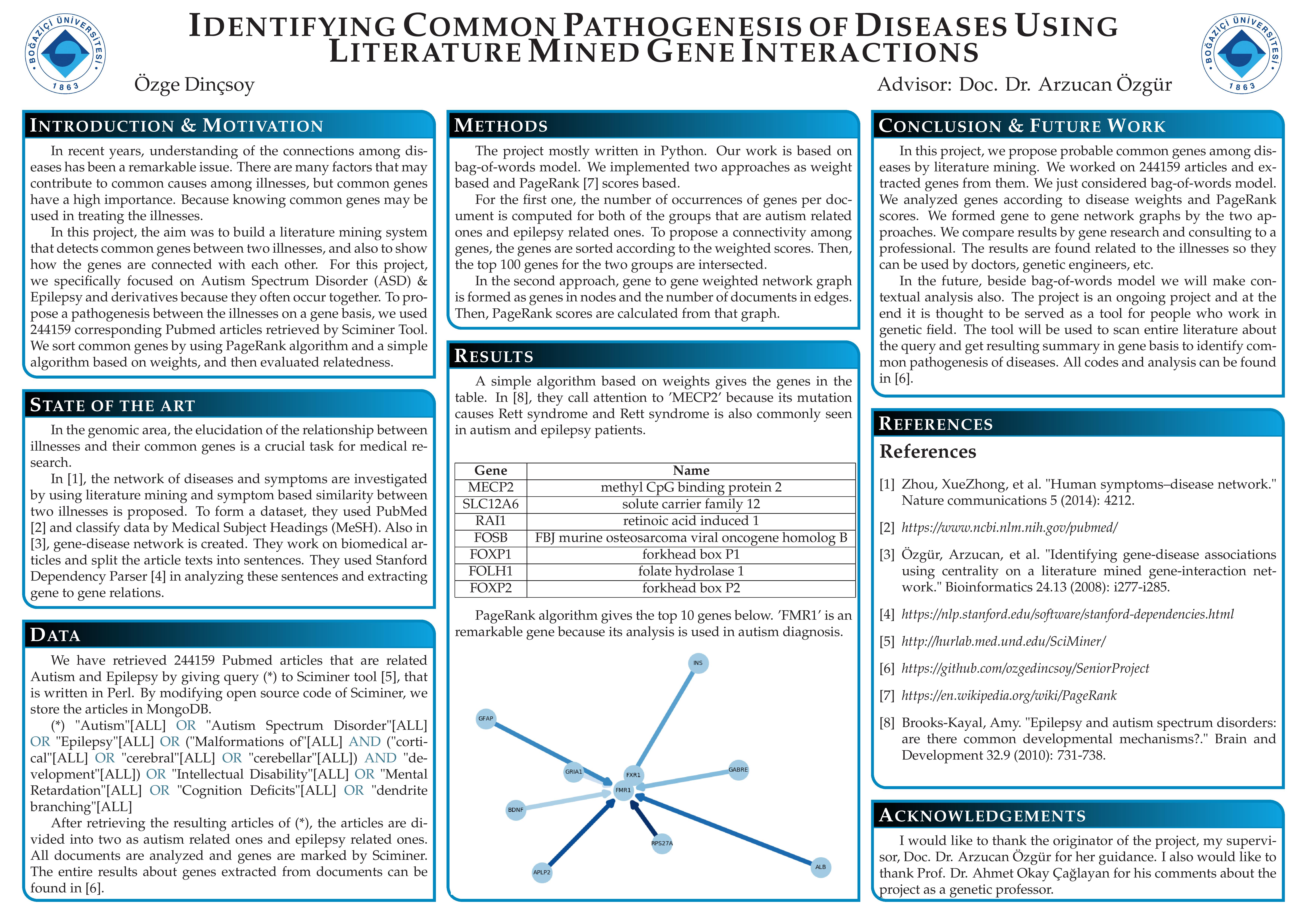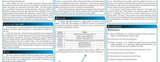 There are some neurologic related diseases that might be seen in the same person and whether there are comman factors that lead to the situation or not has been the subject of interest in biomedical science. Here, by using text mining with articles, our aim is to propose a connection between diseases in gene base. In this project, spesifically, we focussed on the connection between Autism Spectrum Disorder & Epilepsy Disorder and derivatives because they often occur together. We have used PubMed to retrieve related articles and created gene-gene graphs with them. We considered two di erent approaches, one is disease weighting, the other is PageRank algorithm. We have proposed probable genes according to the appropaches. We have evaluated them with a leading expert doctor and took positive feedbacks about results. Later, the project can be adapted to other disease to disease connections.