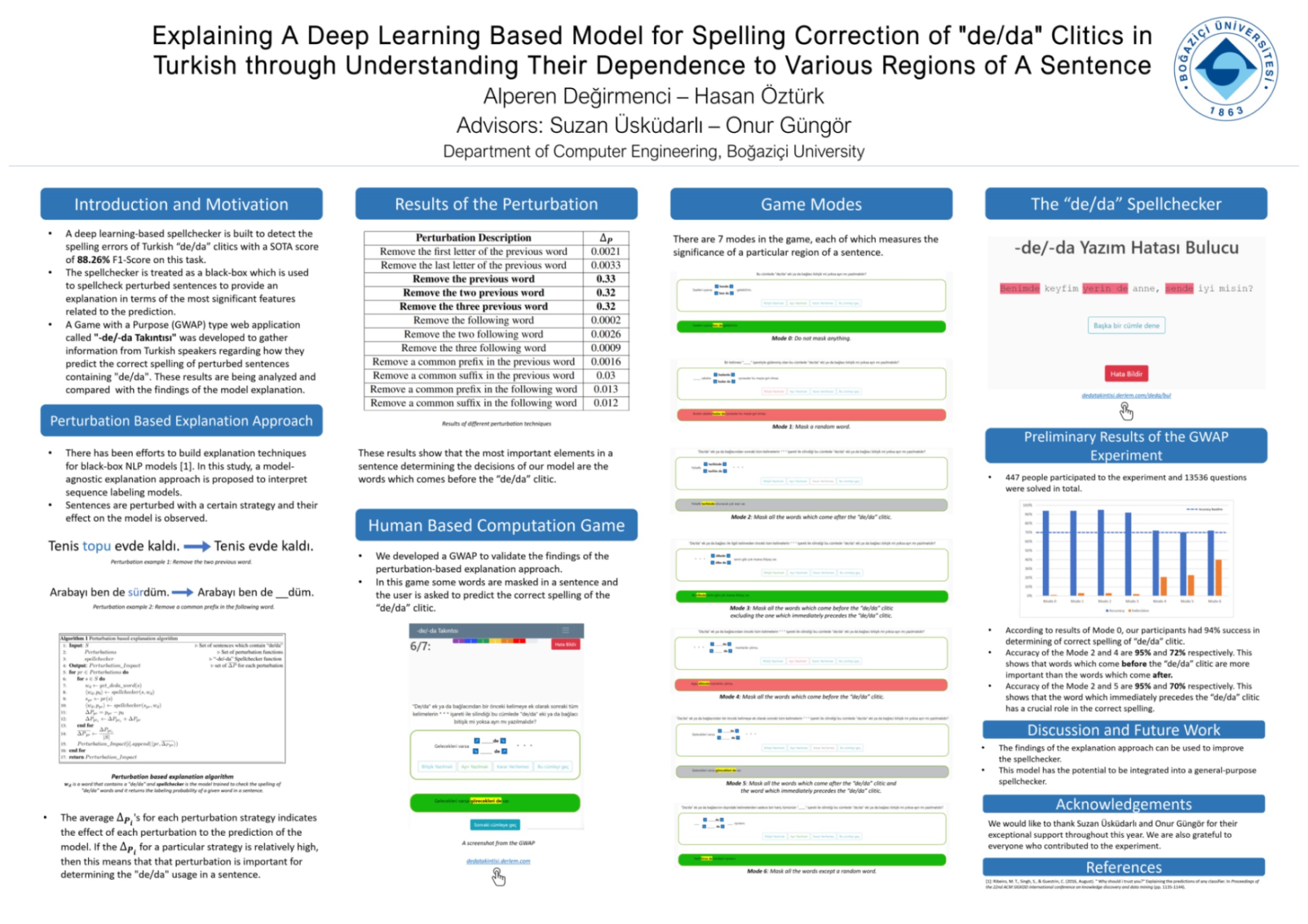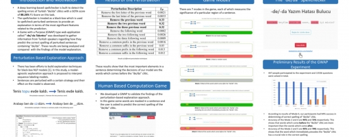 A model agnostic perturbation-based explanation approach is proposed for the spellchecker of Turkish “de/da” spelling errors. Findings of this approach are validated with a GWAP application.