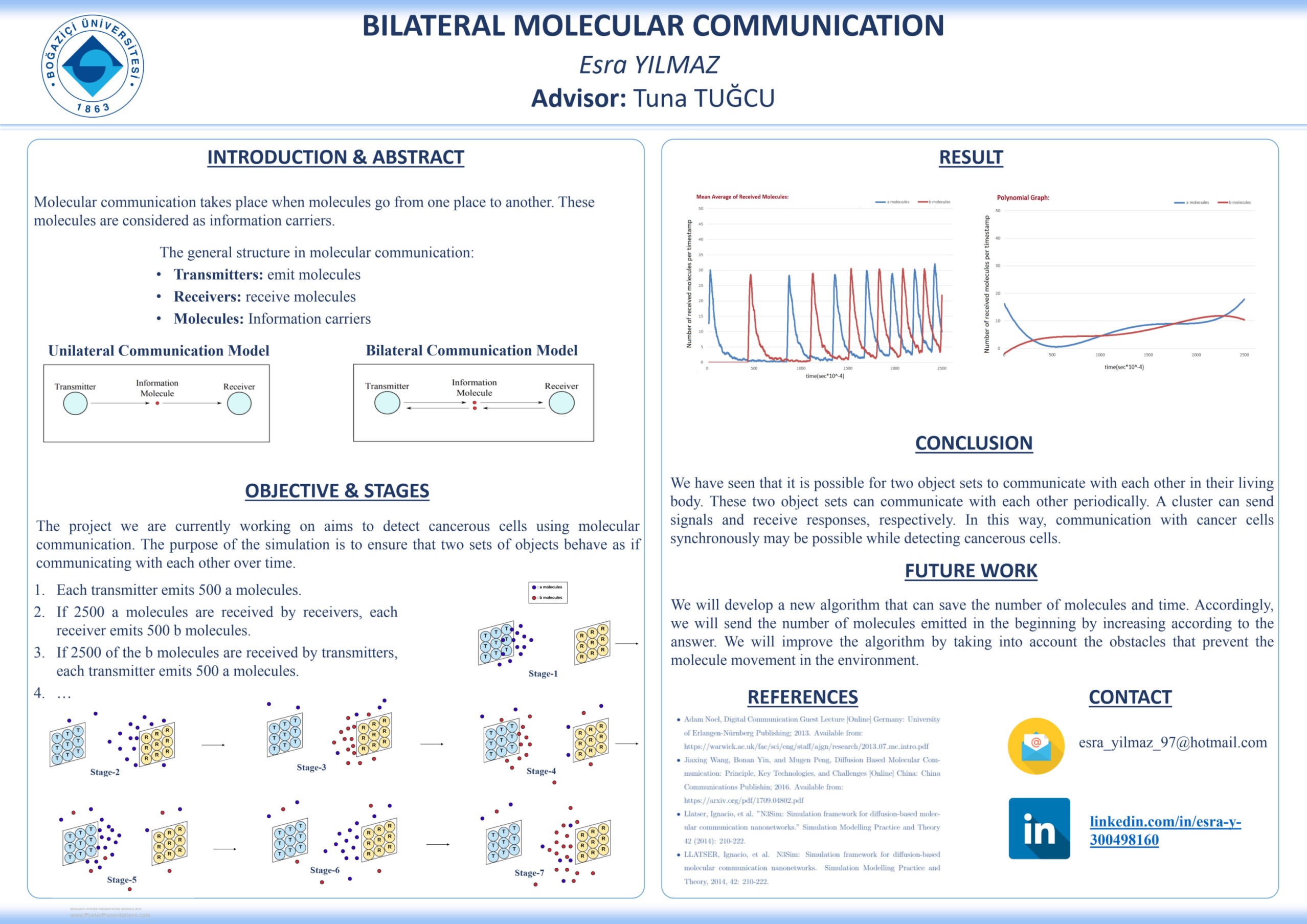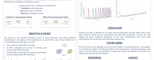 Simulation that allows two different cell sets to send molecules to each other and communicate with each other in a molecular way.