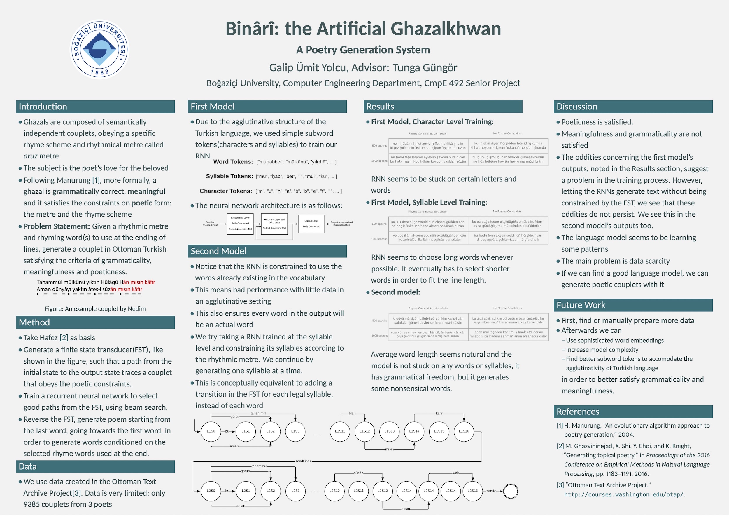 This project tries to generate meaningful, formally correct Ottoman ghazal poems using deep learning, natural language processing techniques with the data created by the Ottoman Text Archive Project.
