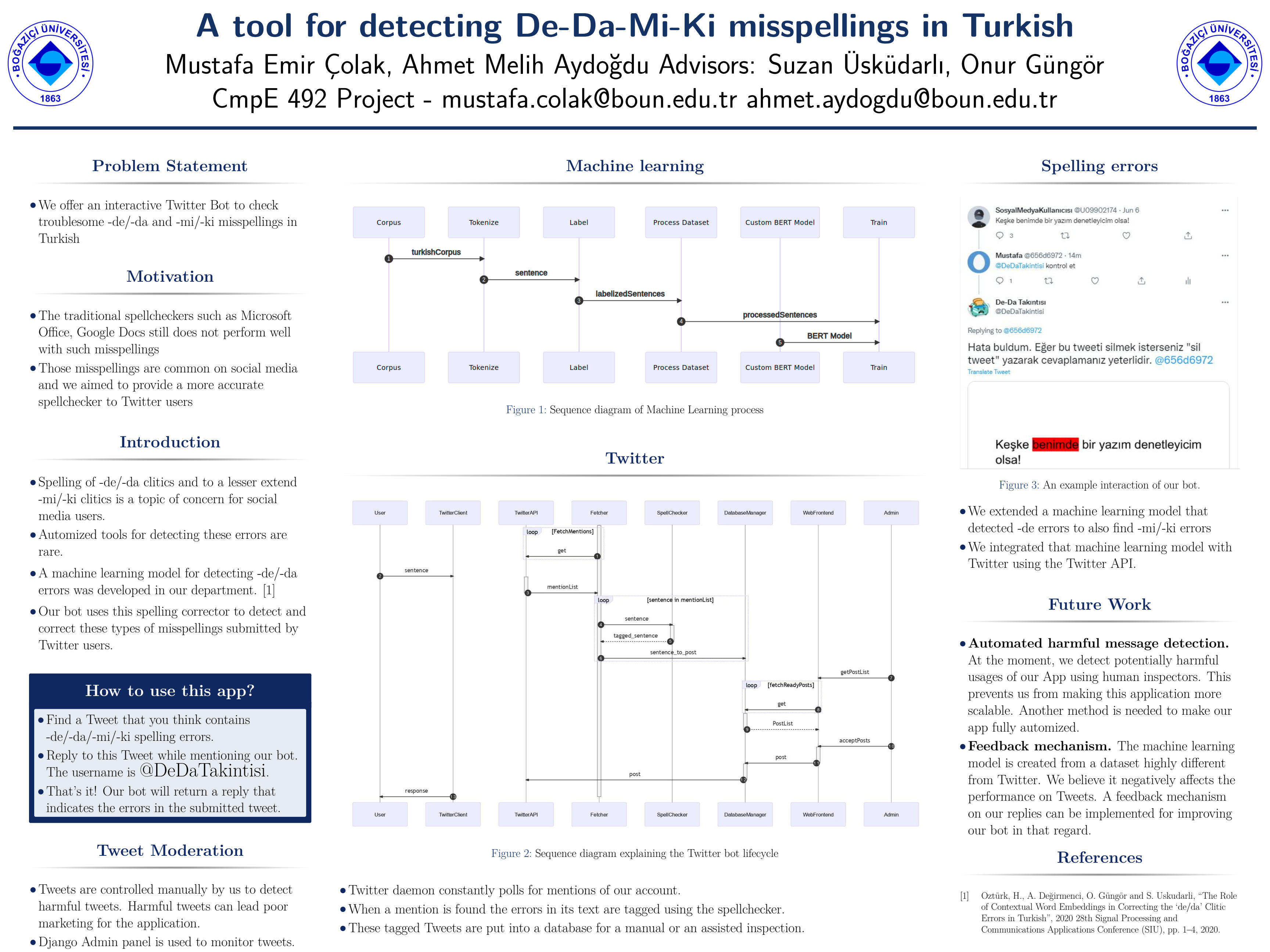 2. The Role of Contextual Word Embeddings in Correcting the ‘de/da’ Clitic Errors in Turkish, Hasan Öztürk; Alperen Değirmenci; Onur Güngör; Suzan Uskudarli, SIU, 2020.