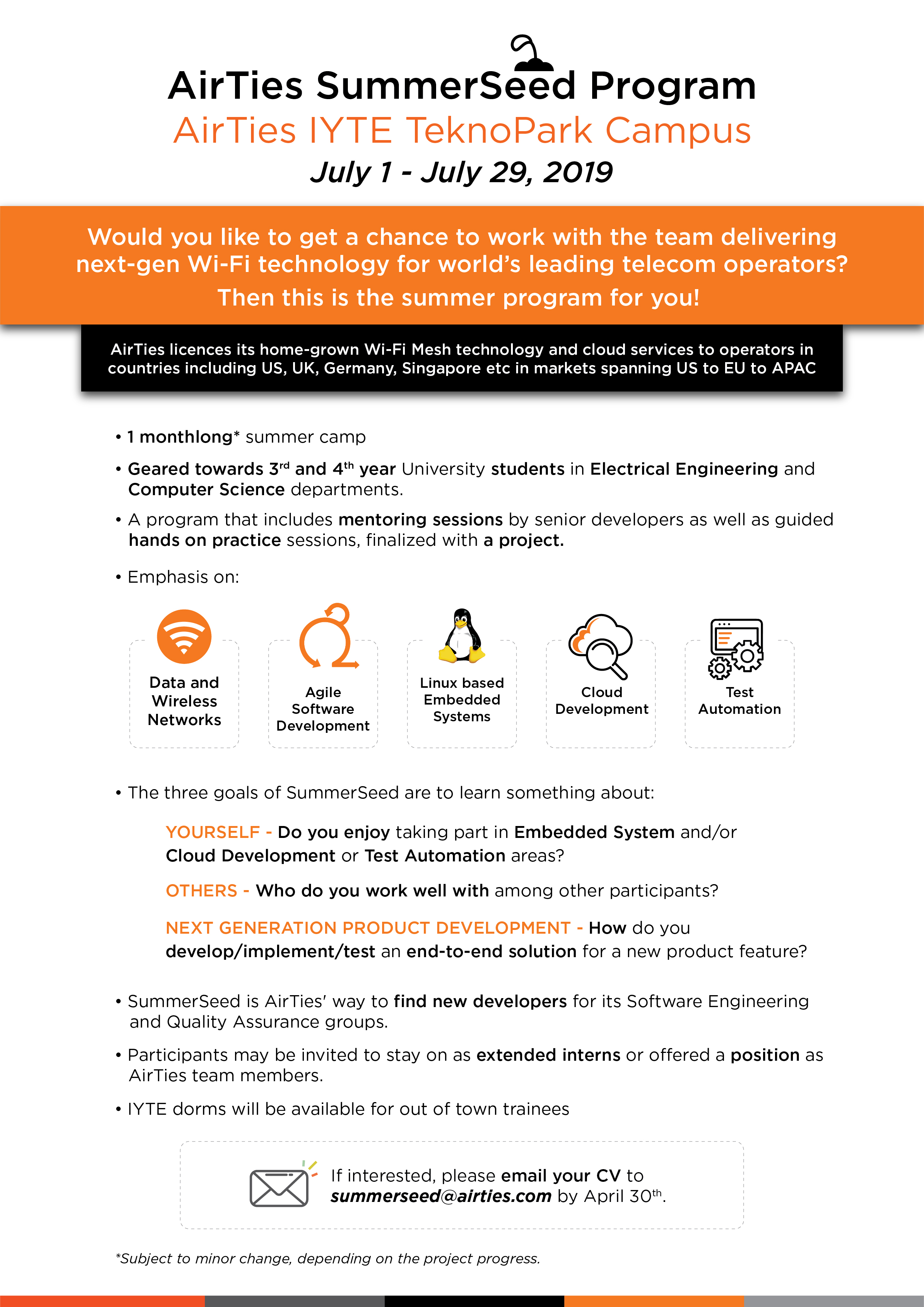 airties.com email adresine CV’nizi göndererek başvurabilirsiniz. İlan broşürü ve detaylı bilgi